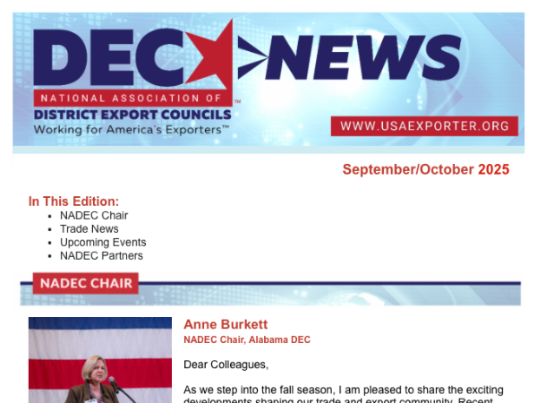 Get news from National Association of District Export Councils in your inbox.